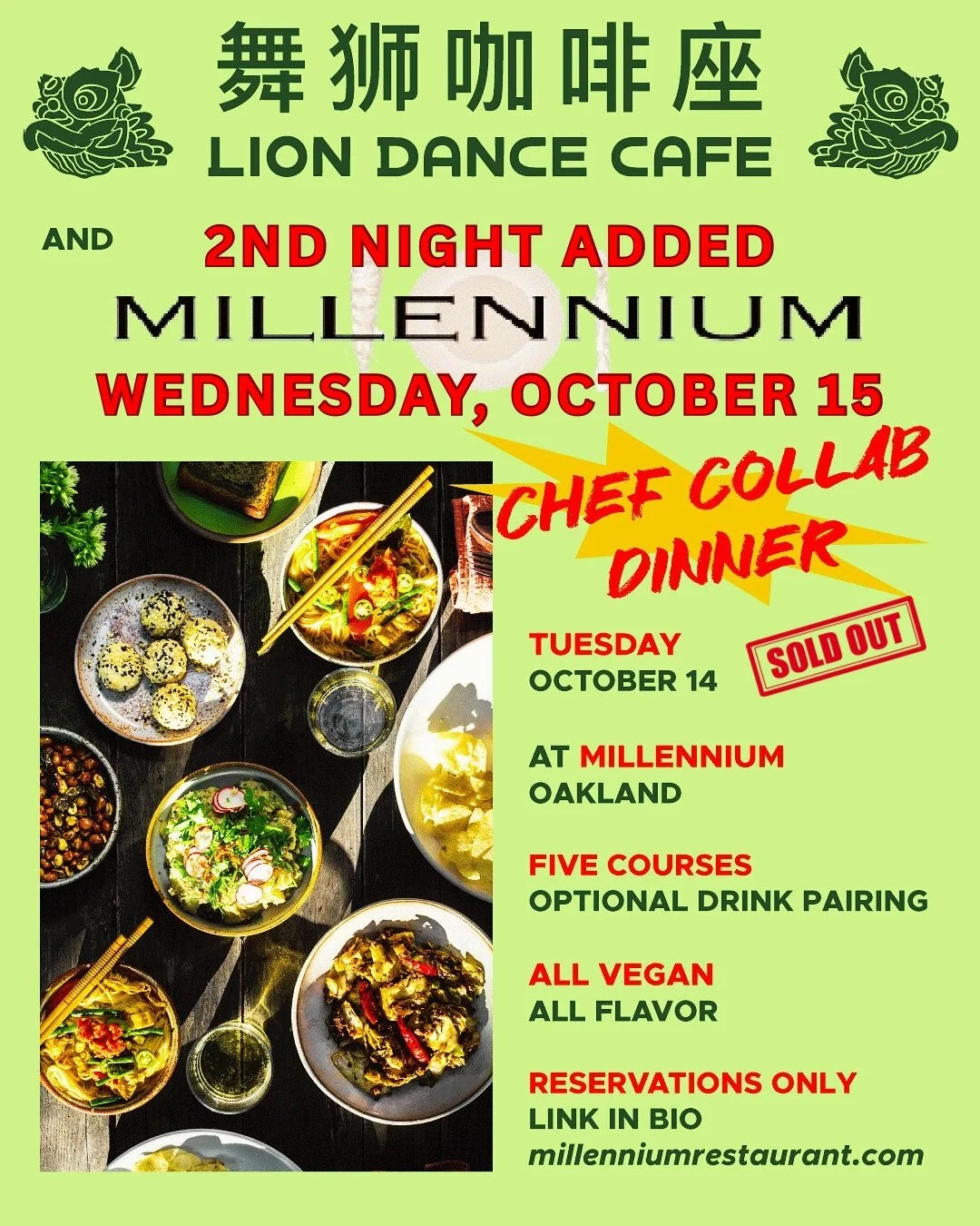 On Tuesday & Wednesday, October 14 & 15, we’re teaming up with C-Y and Shane of Lion Dance Cafe for a two-night-only 5 course dinner. Expect their bold, award winning Italo-Chinese-Singaporean flavors side by side with the food you know us for — all coming together in one unforgettable meal.